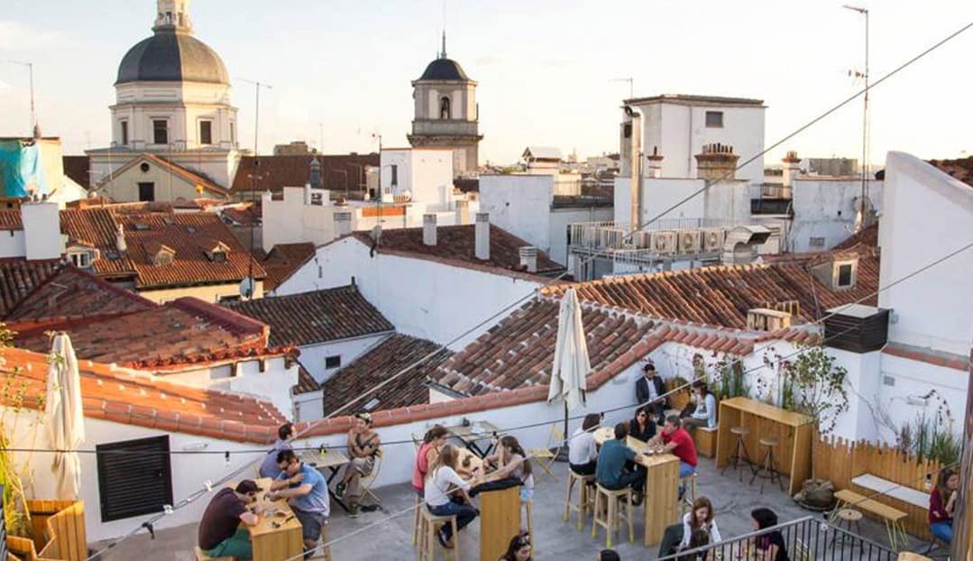 The Hat Madrid is a brand new hostel that’s already winning awards and getting a lot of love from travelers. They call it a boutique hostel so it has a hip “design-y” and upscale vibe — plus it has an outdoor terrace, rooftop bar, solarium, and lots of common space.