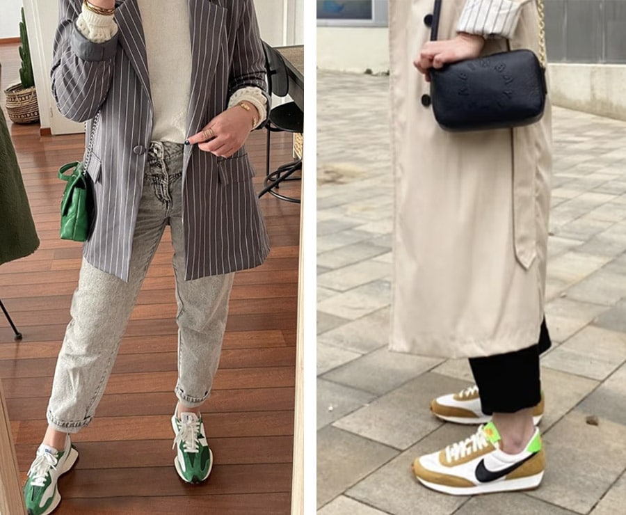 - Sneakers: These are your all-day shoes for when you’re pounding the pavement for miles. A combo of comfort, support, and style are the three things you’ll want in a pair of sneakers.