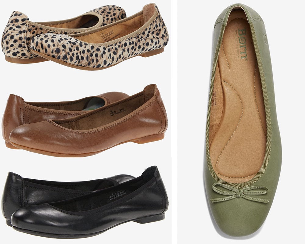 One of the most popular and highest-rated flats is the Born Julianne because they look great, provide decent arch support, and come in multiple colors. Another popular model is the Brin but Born also has many other styles (including many shoes, boots, etc.) so they’re worth checking out.