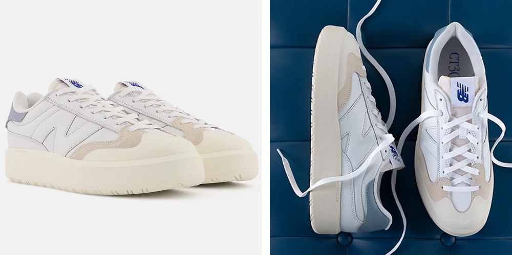 The New Balance CT302 combines a retro court style with a trendy chunky outsole. These casual shoes also have a leather upper for increased durability and easy wear. These are a nice alternative to Nike Air Force 1 or the Adidas Stan Smiths.