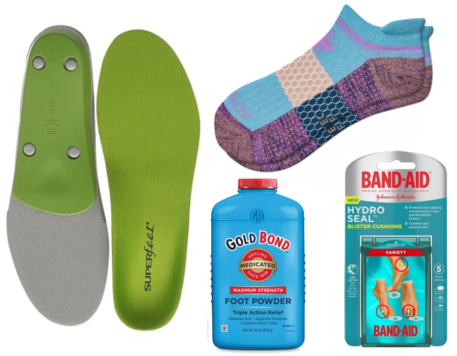 - Foot Powder: Putting on a little foot powder before you head out each day will drastically reduce sweat and odor. Check Amazon as there are multiple options out there.